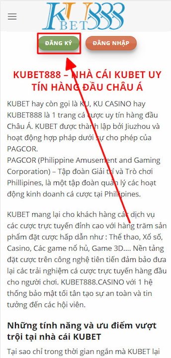 Bước 1 : Truy cập vào trang kubet888.casino và chọn vào mục “Đăng ký”